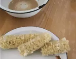 1、将山药去皮,切成大约5厘米长,1厘米宽的长条状;