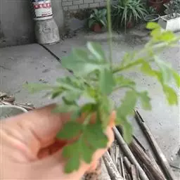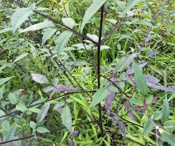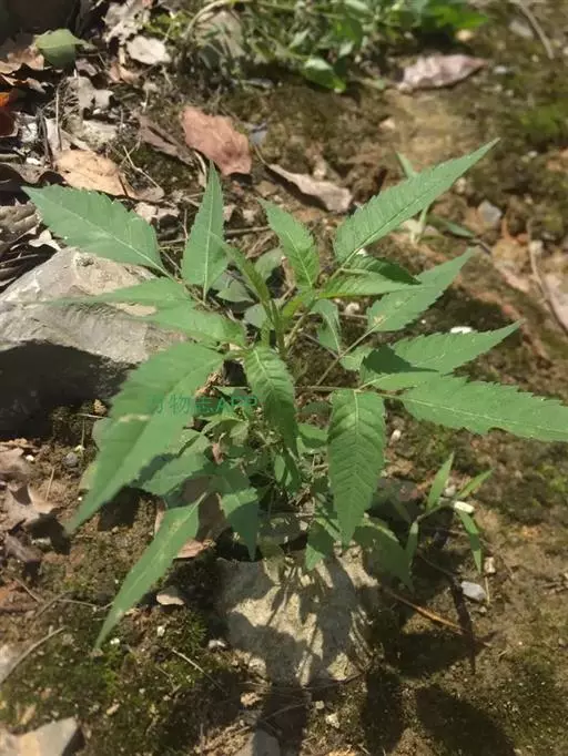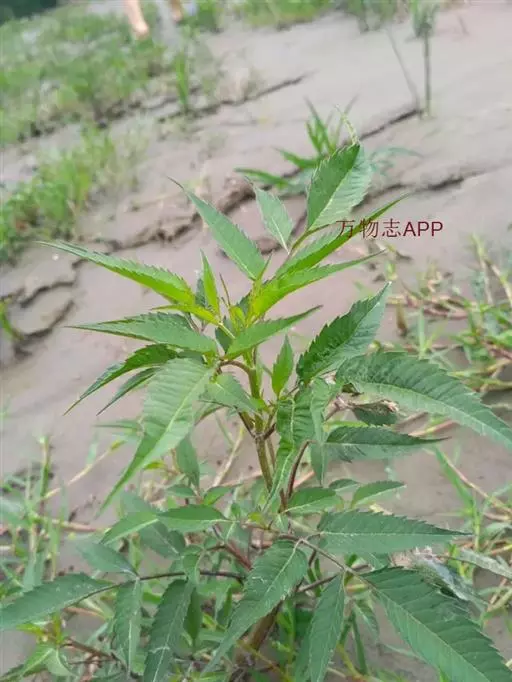 一年生草本。茎直立,分枝,高20-120厘米,被疏毛或无毛,常带紫色。叶对生,具柄,为一回羽状复叶,小叶3-5枚,披针形,长3-10厘米,宽1-3厘米,先端渐尖,边缘有粗锯齿,通常背面被稀疏短柔毛,至少顶生者具明显的柄。
