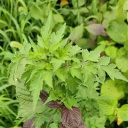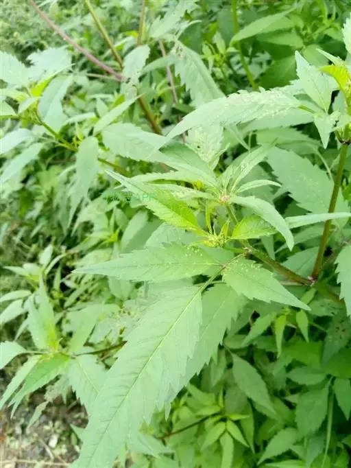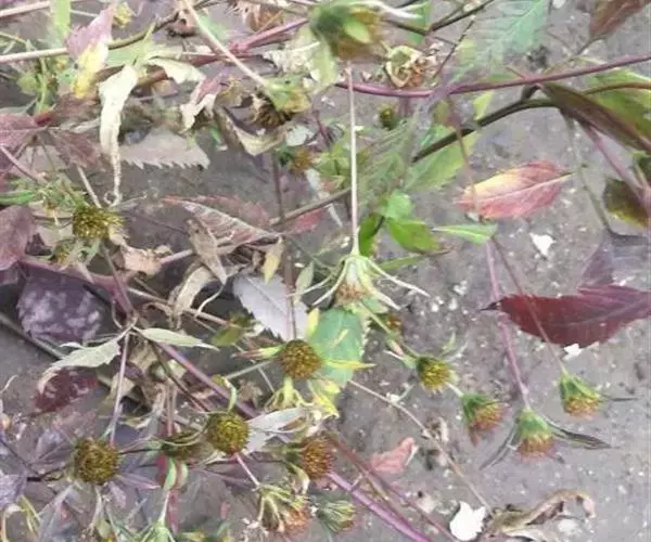 大狼杷草(学名:Bidens frondosa L.),一年生草本。茎直立,分枝,常带紫色。叶对生,具柄,为一回羽状复叶,披针形,先端渐尖,边缘有粗锯齿,通常背面被稀疏短柔毛,至少顶生者具明显的柄。头状花序单生茎端和枝端。总苞钟状或半球形,披针形或匙状倒披针形,叶状,边缘有缘毛,内层苞片长圆形,无舌状花或舌状花不发育,极不明显,筒状花两性;瘦果扁平,狭楔形,近无毛或是糙伏毛,顶端芒刺2枚,长约2.5毫米,有倒刺毛。