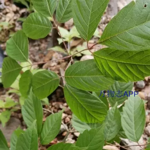 叶纸质,3小叶组成的复叶;小叶椭圆形或长圆椭圆形,长6-12厘米,宽3-5厘米,先端渐尖,基部楔形,阔楔形或近于圆形,全缘或近先端部分有稀疏的3-5个钝锯齿,顶生小叶的小叶柄长约1厘米,侧生小叶的小叶柄长3-5毫米,有短柔毛;嫩时两面无毛或有短柔毛,在下面沿叶脉被毛更密,渐老时无毛,主脉和1113对侧脉均在下面较在上面显著;叶柄长4-8厘米,有短柔毛。