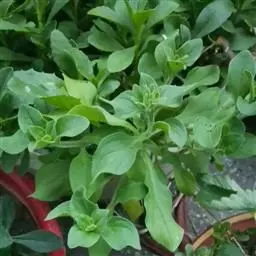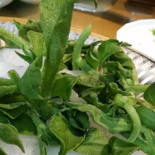 冰叶日中花栽培种 冰叶日中花俗称冰菜,含有多种氨基酸、黄酮类化合物等其他蔬菜中少有的营养物质,其酸味是天然的苹果酸味,富含钠、钾、胡萝卜素等矿物质,是一种高营养价值的蔬菜。冰菜表面覆有一层形似“冰晶”的泡状细胞,其中富含天然植物盐,对高血压、糖尿病、高血脂患者有好处;因其富含多种氨基酸,脑力劳动者及青少年多食用可以减缓脑细胞的老化速度,强化脑细胞功能。