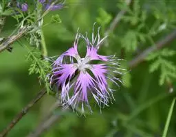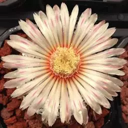 花单个腋生,雏菊状,直径约2.5厘米,几无梗;花瓣多数,线形,比萼片长,带白色或浅玫瑰红色;花柱5,丝状,柱头5。蒴果5室,裂瓣脊有翅。