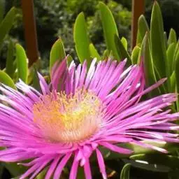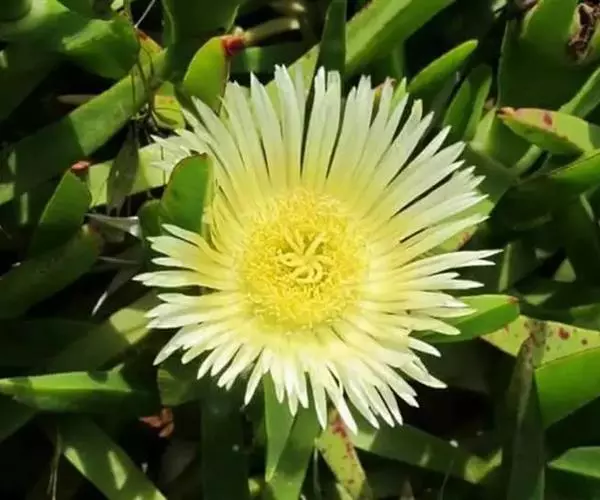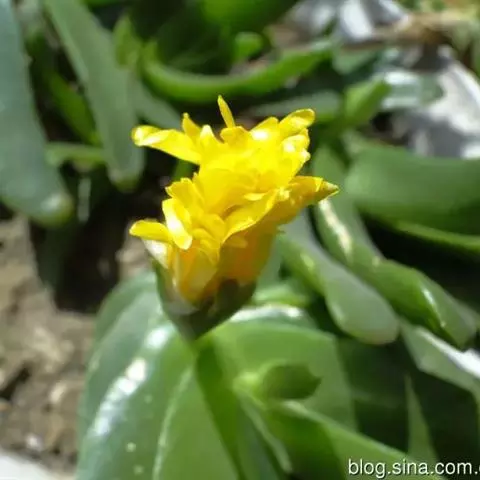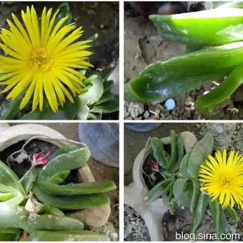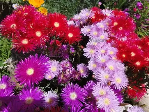 冰叶日中花叶形奇特,花色艳丽,茎叶表面上还有一粒粒的泡状小隆起,形似水晶一般,十分美丽,具有一定的观赏价值。