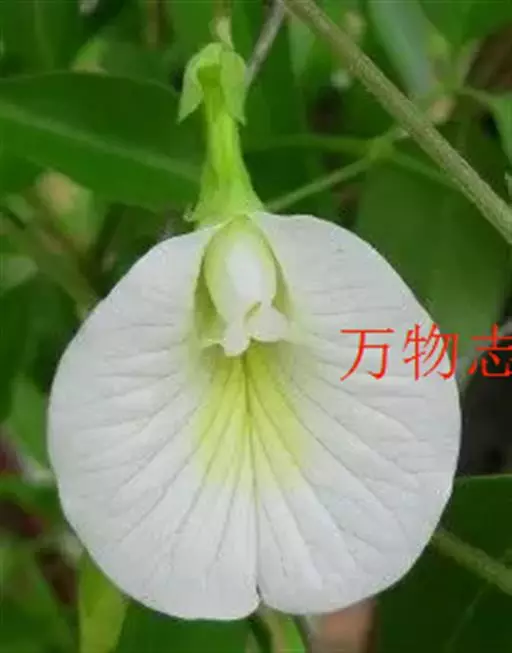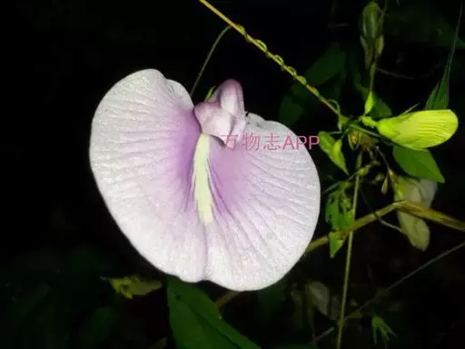 花大,单朵腋生;苞片2,披针形;小苞片大,膜质,近圆形,绿色,直径5-8毫米,有明显的网脉;花萼膜质,长1.5-2厘米,有纵脉,5裂,裂片披针形,长不及萼管的1/2;先端具凸尖;花冠蓝色、粉红色或白色,长可达5.5厘米,旗瓣宽倒卵形,直径约3厘米,中央有一白色或橙黄色浅晕,基部渐狭,具短瓣柄,翼瓣与龙骨瓣远较旗瓣为小,均具柄,翼瓣倒卵状长圆形,龙骨瓣椭圆形;雄蕊二体;子房被短柔毛。荚果长5-11厘米,宽约1厘米,扁平,具长喙,有种子6-10颗;种子长圆形,长约6毫米,宽约4毫米,黑色,具明显种阜。花、果期7-11月。