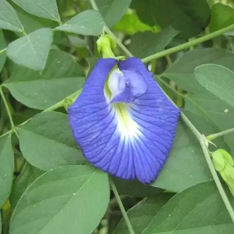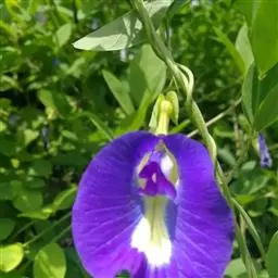 蝶豆(学名:Clitoria ternatea Linn.)是豆科蝶豆属植物。攀援状草质藤本。茎、小枝细弱,被脱落性贴伏短柔毛。叶长2.5-5厘米;托叶小,线形,长2-5毫米;叶柄长1.5-3厘米。花大,单朵腋生;苞片2,披针形。荚果长5-11厘米,宽约1厘米;种子长圆形,长约6毫米,宽约4毫米,黑色,具明显种阜。花、果期7-11月。