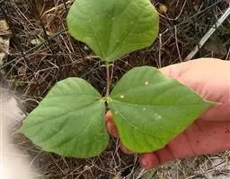 攀援状草质藤本。茎、小枝细弱,被脱落性贴伏短柔毛。叶长2.5-5厘米;托叶小,线形,长2-5毫米;叶柄长1.5-3厘米;总叶轴上面具细沟纹;小叶5-7,但通常为5,薄纸质或近膜质,宽椭圆形或有时近卵形,长2.5-5厘米.宽1.5-3.5厘米,先端钝,微凹,常具细微的小凸尖,基部钝,两面疏被贴伏的短柔毛或有时无毛,干后带绿色或绿褐色;小托叶小,刚毛状;小叶柄长1-2毫米,和叶轴均被短柔毛。