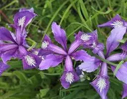 双色野鸢尾为多年生草本植物,叶子呈剑状淡绿色。…