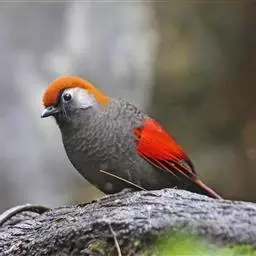 赤尾噪鹛中型鸟类,体长24~28厘米。头顶至后颈红棕色,两翅和尾鲜红色,眼先、眉纹、颊、颏和喉黑色,…