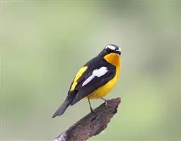 白眉姬鹟是小型鸟类,体长11-14厘米。雄鸟上体大部黑色,眉纹白色,在黑色的头上极为醒目。腰鲜黄色,…