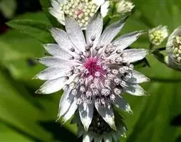 复伞形花序顶生,密生浓密的长柔毛,径3-6厘米,花序梗有时分枝,长2-6厘米;伞辐8-16,不等长,长1-3厘米;无总苞片;小总苞数片,线状披针形,边缘及背部密被柔毛;小伞形花序有花,15-20,花白色;萼齿5,卵状披针形,长0.5-1毫米,被柔毛;花瓣白色或带堇色;花柱基短圆锥形。