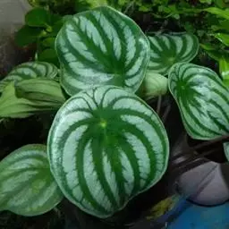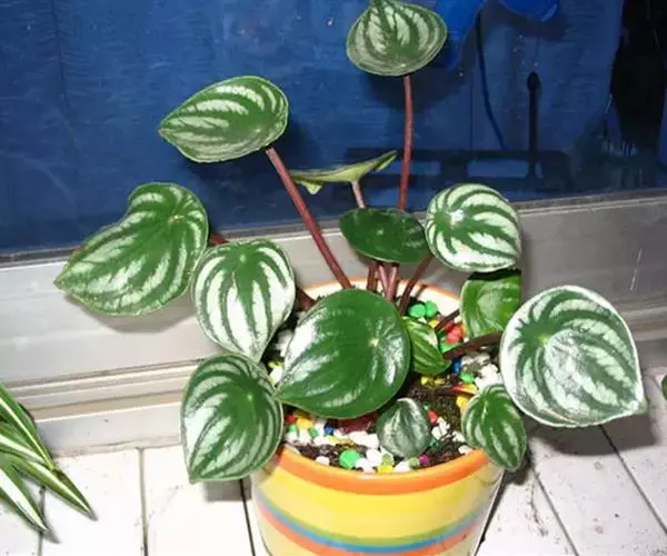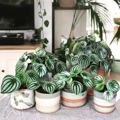 西瓜皮椒草株形玲珑,秀叶丛生,形态圆润,绿如翡翠,白若美玉,椎洁娇莹;西瓜皮椒草,宽脉明显,八条均分,浅地深脉,富有光泽,状若西瓜,可以较长时间放在室内莳养,是室内绿化、美化装饰的观叶植物。