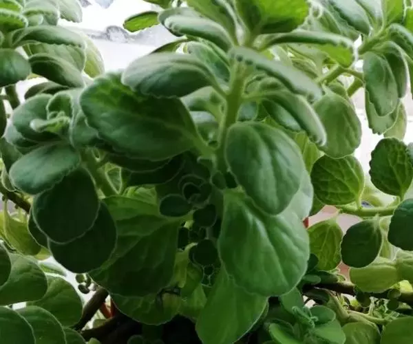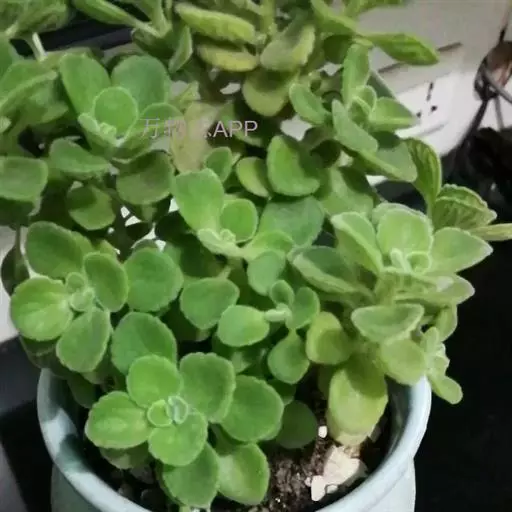亚灌木状多年生草本植物。多分枝,全株被有细密的白色绒毛。肉质叶,交互对生,绿色,卵圆形,边缘有钝锯齿。茎细瘦,匍匐状,分枝多,叶圆形,叶片毛茸茸,花小,白色。因触碰后可散发出令人舒适的香气而享有“碰碰香”的美称。又因其香味浓甜,颇似苹果香味,故又享有“苹果香”美誉。闻之令人神清气爽。