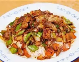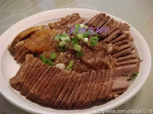 4、出品时将豆腐切片垫底,鹅胗、肝切片,鹅掌、翼修斩成小段,鹅身去骨片肉,分别摆进拼盘中。烧热卤水汁,淋在菜肴上,随手将卤水汁倒出,即可上桌。