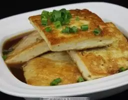 2、豆腐用热油炸至金黄色,放进卤水里浸煮10分钟。
