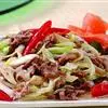 小炒黄牛肉是以牛肉、青尖椒、红尖椒等食材制成的一道菜品,香味浓郁,味道鲜美,…