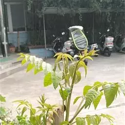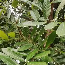 叶为2-3回奇数羽状复叶,长20-40厘米;小叶对生,卵形、椭圆形至披针形,顶生一片通常略大,长3-7厘米,宽2-3厘米,先端短渐尖,基部楔形或宽楔形,多少偏斜,边缘有钝锯齿,幼时被星状毛,后两面均无毛,侧脉每边12-16条,广展,向上斜举。