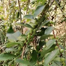 浆果状蒴果卵状或近圆球状,长2-2.5厘米,直径1.5-2厘米,黄色后变紫红色,不开裂,内有种子1-3颗;种子扁椭圆形或近圆形,长1-1.3厘米。花期3-4月,果期6-10月。 [2-3]