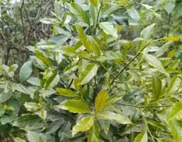 叶片 纸质,倒卵状长圆形、倒披针形或长圆形,长9-15厘米,宽3-8厘米,顶端短渐尖至急尖,基部楔形,全缘或浅波状,上面绿色,下面黄绿色,两面均无毛;侧脉每边5-7条,上面扁平,下面凸起;叶柄长1-4.5厘米。