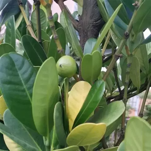 菲岛福木,别名:福木、福树,拉丁文名:Garcinia subelliptica Merr.藤黄科、藤黄属乔木,小枝坚韧粗壮,叶片厚革质,卵形,卵状长圆形或 椭圆形,稀圆形或披针形。花杂性,雄花和雌花通常混合在-起,簇生或单生于落叶腋部;花瓣倒卵形,黄色;子房球形,花柱盾形,5深裂。浆果宽长圆形,成熟时黄色,外面光滑,产于中国台湾南部,台北市亦见栽培。生于海滨的杂木林中。该种是中国沿海地区营造防风林的理想树种。