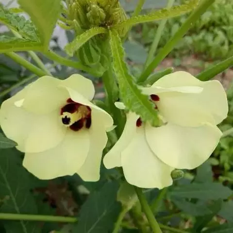 咖啡黄葵 Moench)亦称黄秋葵,是锦葵科一年生草本植物。茎圆柱形,疏生散刺。叶掌状,裂片阔至狭,…
