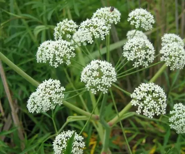水毒芹已知是剧毒性有毒植物,对各种家畜和人均有毒,而且症状相似。其毒素直接作用于中枢神经系统,引起强烈惊厥,呼吸衰竭而死亡。其块茎给绵羊剂量为体重的0.2~0.5%,牛0.1%、马0.5%均可致死。