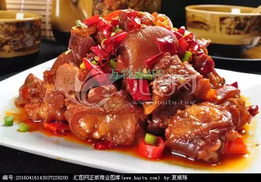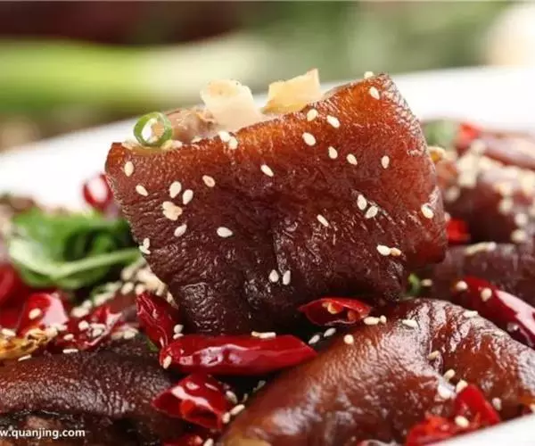 香辣美容蹄是一道荤菜菜肴名称,肉香味美,色泽诱人,令人垂涎。