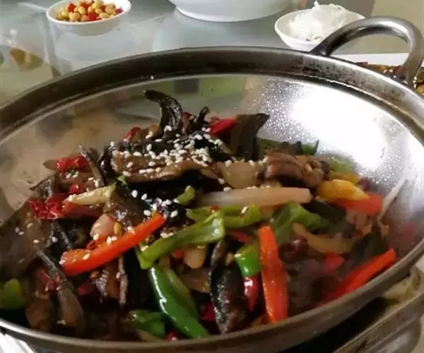 小鸡炖蘑菇是一道东北炖菜。通常是用干蘑菇、鸡肉和粉条一同炖制而成。榛蘑可以衬托出鸡肉的鲜香,粉条滑…