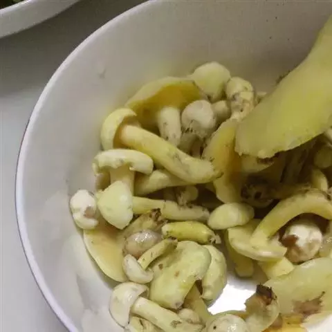 在将蘑菇用温水泡30分钟,洗净待用。