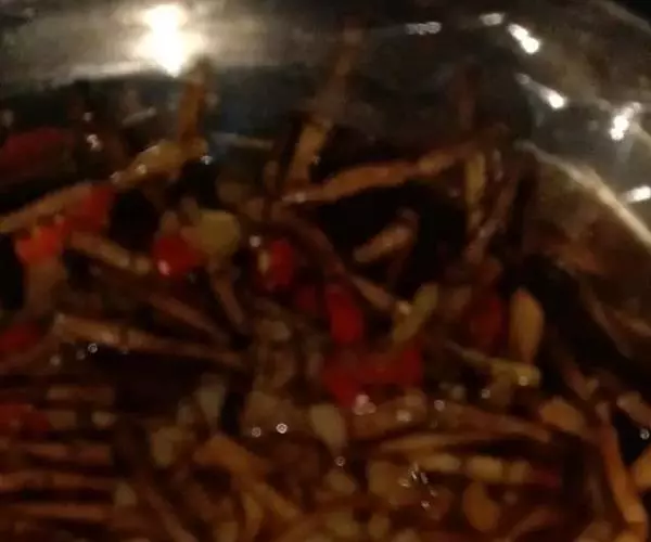 茶树菇一般采用烘烤法干制,烘烤技术与干制品质量密切相关。鲜菇采摘后,最好用阳光先晒半天,按大小分开,除去杂物、蒂头,再将茶树菇的菌褶向下,排放在烤盘上,送到烤房烘烤。温度由低到高,温度过低会使产品腐烂变色,温度过高会把产品烤焦。一般要求烘烤前将烤房预热到40-45 ℃,进料后下降30-35 ℃。晴天采收的菇较干,起始温度可高一点,雨天采收的菇较湿,起始温度应低一点。随着菇的干燥缓慢加温,最后升到60-65 ℃,勿超过75℃,整个烘烤过程,视产品种类与干湿度总需6-10小时。