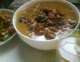 首先:选用细长之茶树菇,味道好,粗大味道稍差,霉变的坚决舍弃;其次:茶树菇用水稍微泡一下,洗干净,去除异味;再次:煲汤食材,柴鸡(广东叫走地鸡)、排骨,其他味道不好;临了:只放姜(拍烂)、盐(勿咸)即可,其他调料勿放,否则走味。