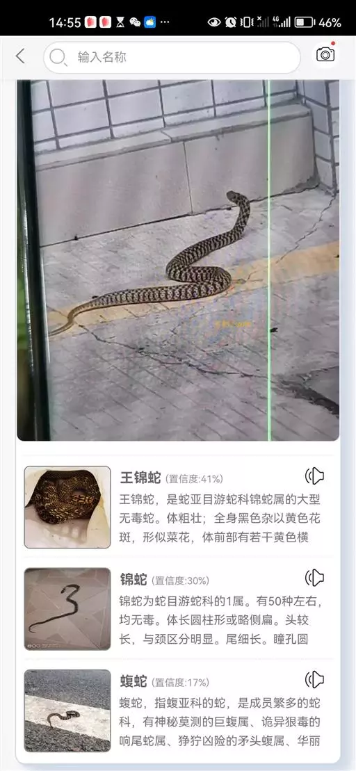 王锦蛇 成体王锦蛇作重点讲述:一般体型进1.5以上(对于王锦蛇来说很轻松)。体重500g以上的王锦,性格多偏向于懒散、爱盘踞休息。活动量明显减少,喜爱泡水,触摸反应同样较大。这里着重说一下王锦捕食习性:分 触觉,视觉,嗅觉三种模式。据本作观察,大部分王锦蛇在捕食活体小白时,多利用视觉与触觉。在接受死食后,给予死食在箱内,多靠嗅觉。在日常饲养管理中,王锦蛇视觉极其敏感,对任何动作都会做出反应。(苗与亚成更为明显,同所有有性格的蛇类一样)接近王锦蛇的方法十分简单,前提是需要了解该蛇性格习惯。蛇类的攻击范围每个饲养过的玩家应该都有一定了解。本作从未觉得蛇凶是负面事情,王锦甚至比王蛇类更有智商和能动性,王蛇类凶多为神经质,王锦有规律且有方法可循。总之,在我饲养的王锦蛇中 还未遇到过无法控制的个体。一般来说,迅速接近至头部上方,反手托住蛇颈及头部,随之另一只手将腹部拿起,即可随意上手,避免在蛇头前方引诱其自我防卫,基本无攻击性。