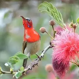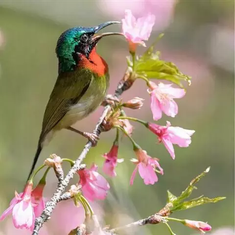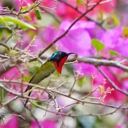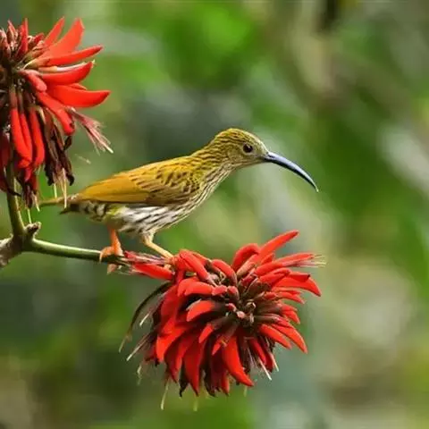 纹背捕蛛鸟:为太阳鸟科捕蛛鸟属的鸟类。是太阳鸟科中体型较大的一种,体重25-45克,…