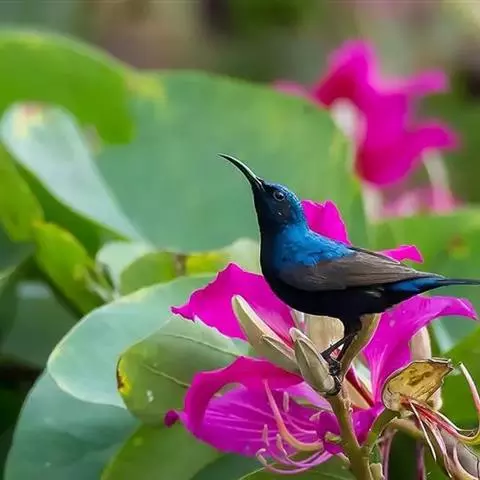 紫色蜜鸟为太阳鸟科花蜜鸟属的鸟类。分布于阿拉伯、伊朗、阿富汗、印度、尼泊尔、锡金、孟加拉、中南半岛、斯里兰卡以及中国大陆的云南等地,多栖息于海拔约950米以下的常绿阔叶林或村寨附近的丛林间。该物种的模式产地在印度的Gurgaon。