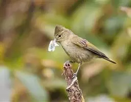 长嘴捕蛛鸟,小型鸟类,体长14-16厘米。嘴长而尖向下弯曲。上体橄榄绿色,眼先和短眉灰白色,…