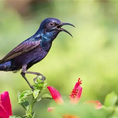 雀形目、太阳鸟科、太阳鸟属鸟类的通称。体型纤细,嘴细长而下弯,…
