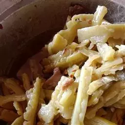 油焖竹笋是一道色香味俱全的名菜,属于浙菜系。竹笋去掉老根和笋衣,切成寸段,放入开水锅中,…