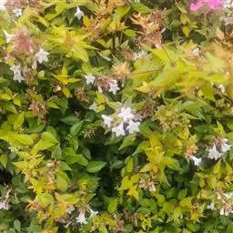大花六道木,忍冬科六道木属半常绿矮生灌木。其幼枝为红褐色,有短柔毛;叶片倒卵形为墨绿色,…