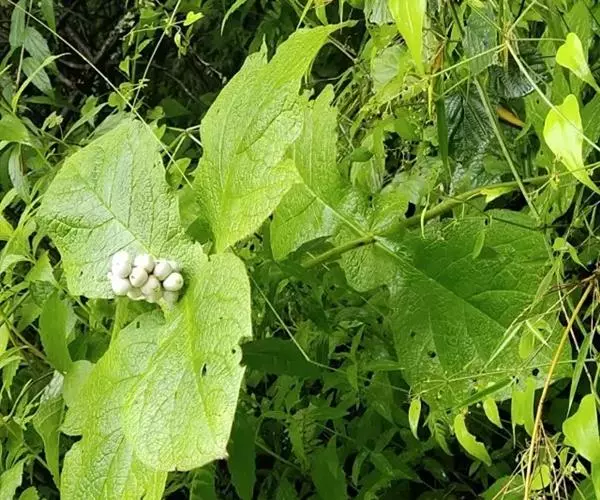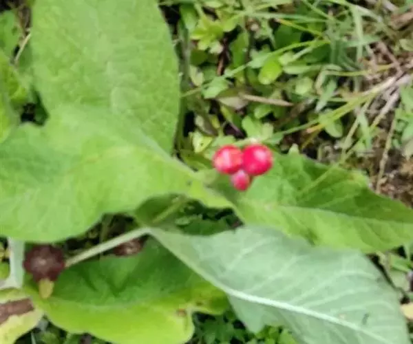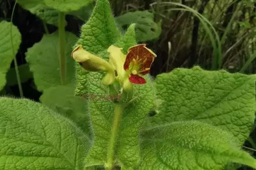 穿心莛子藨(Triosteum himalayanum Wall)忍冬科,莛子藨属,多年生草本,高30~50厘米,全体被粗毛。根粗壮,圆锥形,分叉,暗褐色。茎直立,单生。叶对生,无柄,基部愈合为一体,而茎贯穿中心;叶倒卵形,长10~20厘米,宽6~13厘米,先端钝或急尖,全缘或呈波状。穗状花序顶生;花淡紫色;萼管卵形,裂片5,宿存;花冠狭漏斗状,裂片5,不等;雄蕊5,花药内藏;子房下位。浆果卵形;具种子3粒。