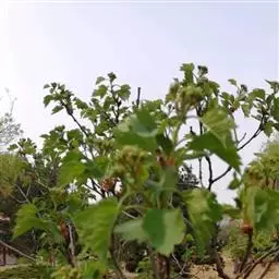 插条采集选择生长健壮、无病虫害、性状优良的当年生半木质化枝条,在阴天或无风的早晨剪取,剪留长度为6至7厘米,下切口为马蹄形,位于叶或腋芽下,切口要光滑,利于形成愈合组织。一般每个插条带2个掌叶。注意不要伤及叶片,以利光合作用。
