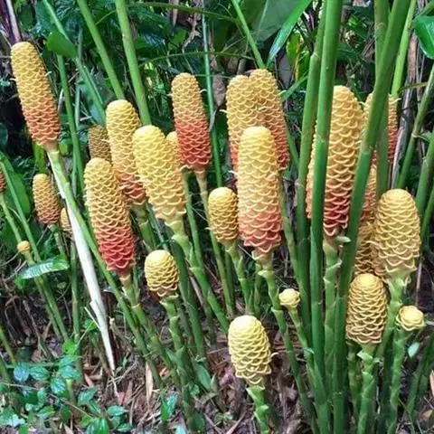 珊瑚姜是姜科、姜属植物。株高近1米。叶片长圆状披针形或披针形,长20-30厘米,宽4-6厘米,…