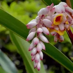 密苞山姜是姜科,山姜属多年生草本植物,株高可达1.5米。叶片椭圆状披针形,顶端渐尖,并具细尾尖,基…