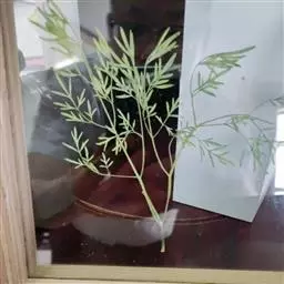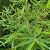 凤尾竹 Raeusch. ex Schult. ’Fernleaf’ R. A. Young)是禾本科,簕竹属孝顺竹的变种。植株较高大,杆高可达6米,竿中空,小枝稍下弯,下部挺直,绿色;竿壁稍薄;节处稍隆起,无毛;叶鞘无毛,纵肋稍隆起,背部具脊;叶耳肾形,边缘具波曲状细长繸毛;叶舌圆拱形,叶片线形,上表面无毛,下表面粉绿而密被短柔毛,小穗含小花,中间小花为两性;外稃两侧稍不对称,长圆状披针形,先端急尖;内稃线形,脊上被短纤毛,花药紫色,子房卵球形,羽毛状。成熟颖果未见。原产中国,华东、华南、西南以至台湾、香港均有栽培。凤尾竹喜温暖、湿润和阳光充足的环境,耐寒。宜土层深厚、肥沃、疏松的微酸性壤土。该种观赏价值较高,宜作庭院丛栽,也可作盆景植物。全草或根入药,味淡、微苦,性寒,有清热利湿、凉血止血、消肿解毒功效,可治痢疾、泄泻等多种病症。凤尾
