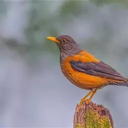 灰头鸫:中型鸟类,体长23-27厘米。整个头、颈和上胸褐灰色,两翅和尾黑色,上、下体羽栗棕色。…