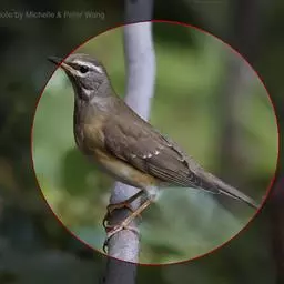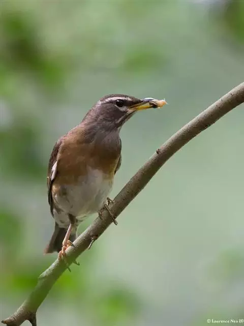 白眉歌鸫,是雀形目鸫科鸫属鸟类。体型略小并具有褐色斑点的歌鸫,上体橄榄褐色,眉纹白色,脸部斑驳,…