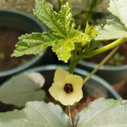 咖啡黄葵 Moench)亦称黄秋葵,是锦葵科一年生草本植物。茎圆柱形,疏生散刺。叶掌状,裂片阔至狭,…