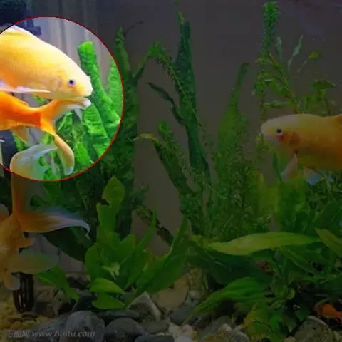 2.投放挑衅鱼:挑衅鱼,又称为沙包鱼,顾名思义,就是让罗汉鱼追逐、打闹、撕咬的鱼。鹦鹉鱼好斗、皮实、价格较低,是挑衅鱼的首选,需要注意的是,选用挑衅鱼的体形一定要比罗汉鱼小,否则罗汉鱼可能会成为被欺负的对象。挑衅鱼一般每两天放入一次,每次半小时左右,通过保持罗汉鱼的兴奋程度提升其体内激素水平,达到隆头目的。