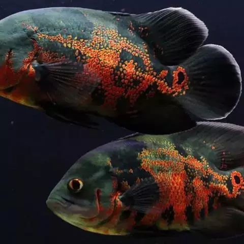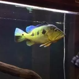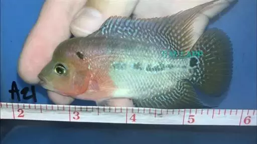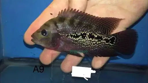 罗汉鱼 德萨斯罗汉鱼是这些品系中最好辨认的,德萨斯是在原种大型鲷鱼(德州豹)杂交改良而来的豹系金花罗汉鱼。这一类罗汉鱼品种现如今在市场上并不多见,而且价格也较高。德萨斯品系鱼体长一般在20~30厘米,额珠较低有前探趋势,无额斑;平眼,眼色以蓝色、金色为主;平嘴;背鳍、臀鳍不拉丝或有短小拉丝;后三鳍形成的夹角较小,尾鳍呈扇形;体形比较扁,体幅宽阔,椭圆形,背部较高,有青色小点和斑纹。性成熟时则由青色斑点变为红色珍珠斑纹,闪闪发光,十分耀眼。