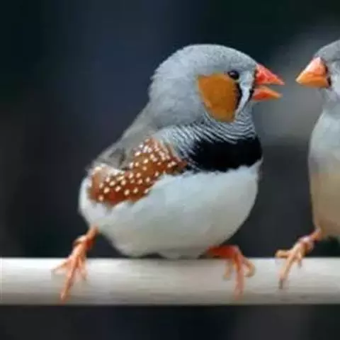 橙颊梅花雀体长约10厘米,头部灰色,两侧有大块橙色区域,嘴基及眼下方有黑纹,两条黑纹间呈白色,…