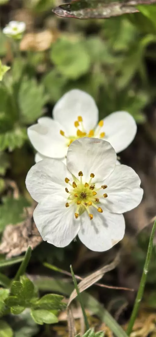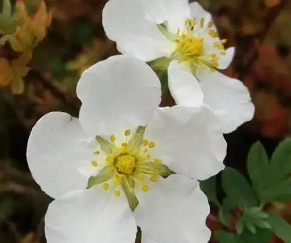 顶生单花或数朵,花梗细长,被疏柔毛;花直径1.5-2.5厘米;萼片卵形,急尖或短渐尖,副萼片披针形、倒卵披针形或卵形,比萼片短或近等长,外面被疏柔毛;花瓣白色,倒卵形,顶端圆钝;花柱近基生,棒状,基部较细,在柱头下缢缩,柱头扩大。瘦果表面被毛。花果期6-11月。