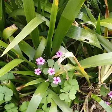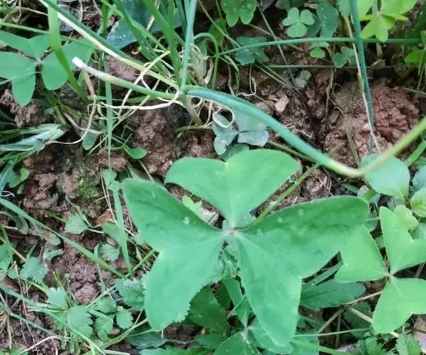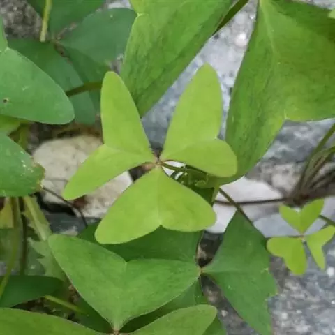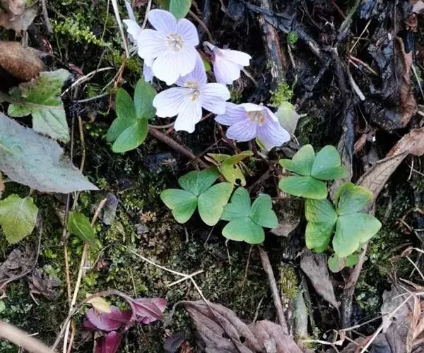 山酢浆草是白花酢浆草的一个变种,多年生草本,高8-10厘米,根纤细,根茎横生,小叶倒三角形或宽倒三角形,蒴果椭圆形或近球形,花期7-8月,果期8-9月。分布于华东、华中、西南、陕西和甘肃,尼泊尔、印度也有分布,生于海拔800-3000米的密林、灌丛和沟谷等阴湿处。